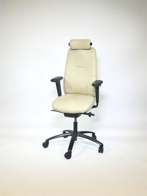 CLEARANCE RH Logic 220 with Headrest - Leather Cream- Group 06 - Black Metal - Fully Upholstered Backshell- CMHR - 8L Leather Topped Armrests - Gas Stem 4T - Black Footbase - Soft Floor Castors - (9212)