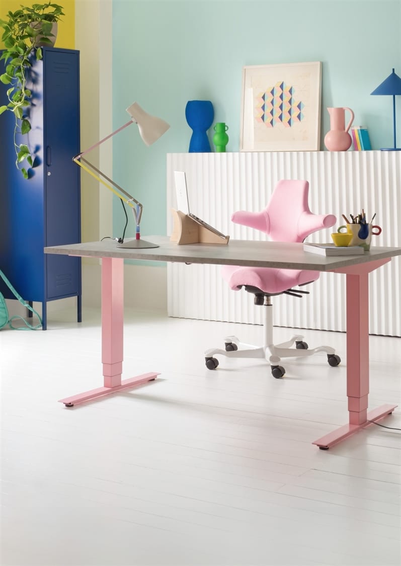 Lavoro Adjustable Desk - Pink Legs - Concrete Coloured Table Top 140x80