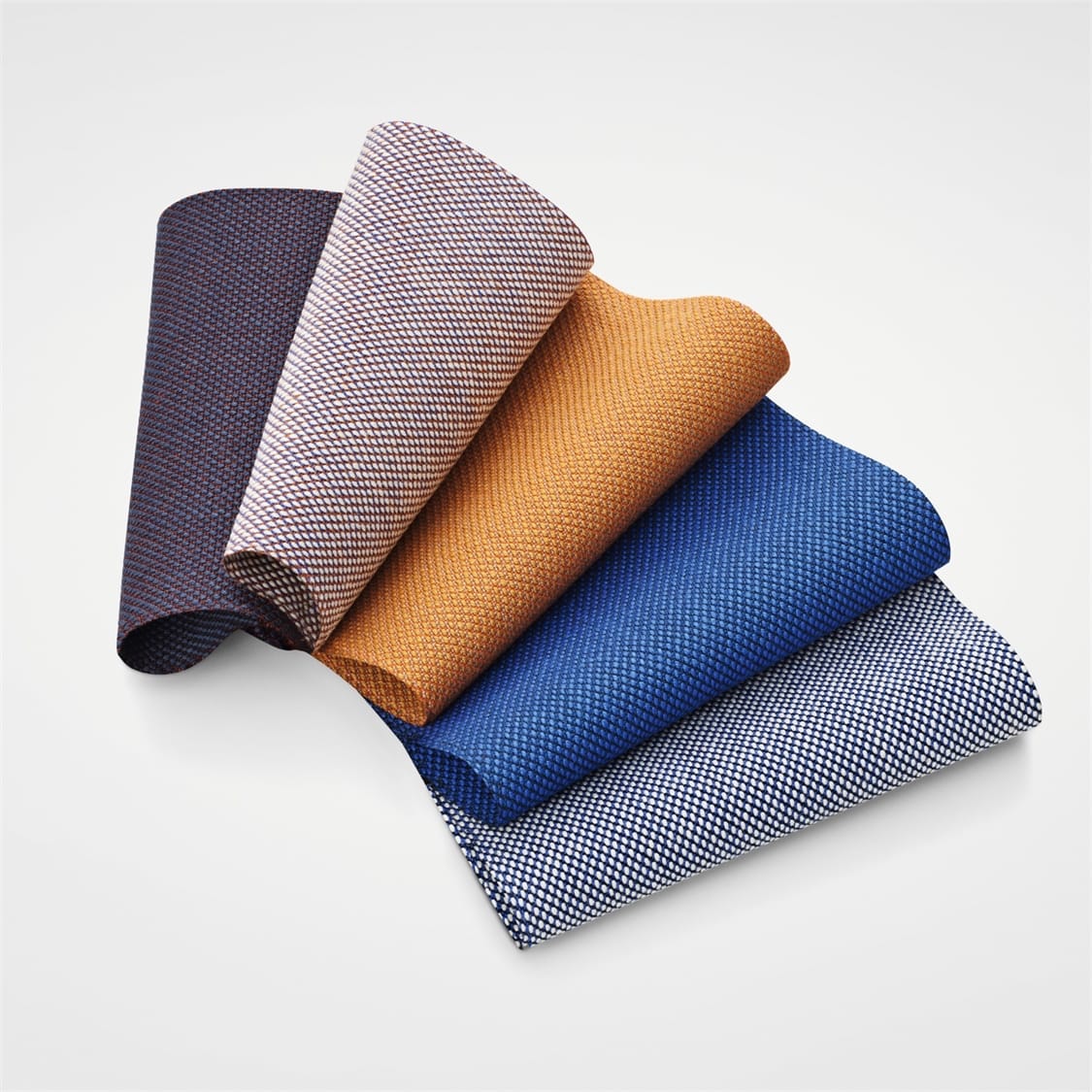 Despite its complex, innovative weave, the textile has a precise and simple look, with its surface resembling small pyramids. Steelcut Trio is made using three differently colored, yarn-dyed yarns to achieve its rich, integrated look.